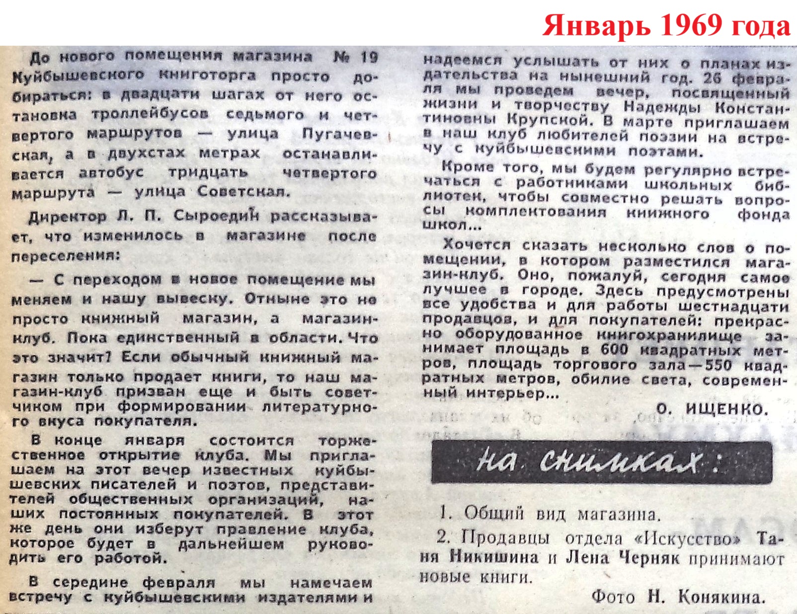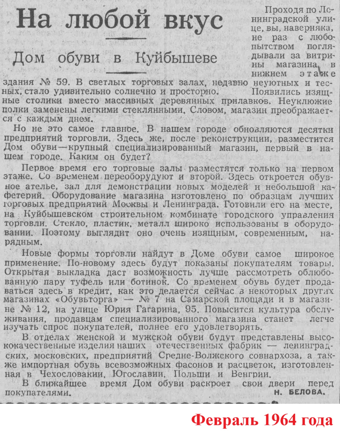 Упомянутый в одной из заметок магазин «Рубин» идентифицировать пока не удалось. Впрочем, известно, что до открытия «Жемчуга» ювелирные магазины в Куйбышеве работали по адресам Ленинградская, 58 и Куйбышева, 74.