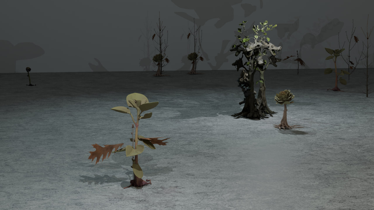 Её инсталляция обращается к теме бессмертия деревьев и представляет платоновскую «Хору» — пространство всепринимающей природы, в котором есть место мерцанию жизни.