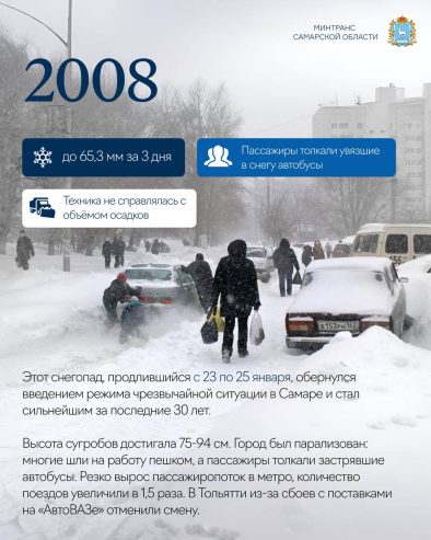 Областной Минтранс подготовил информационные карточки о том, как Самарская область ответила на три рекордных снегопада.