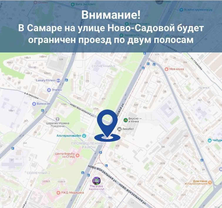 В Самаре на несколько дней ограничат движение по Ново-Садовой