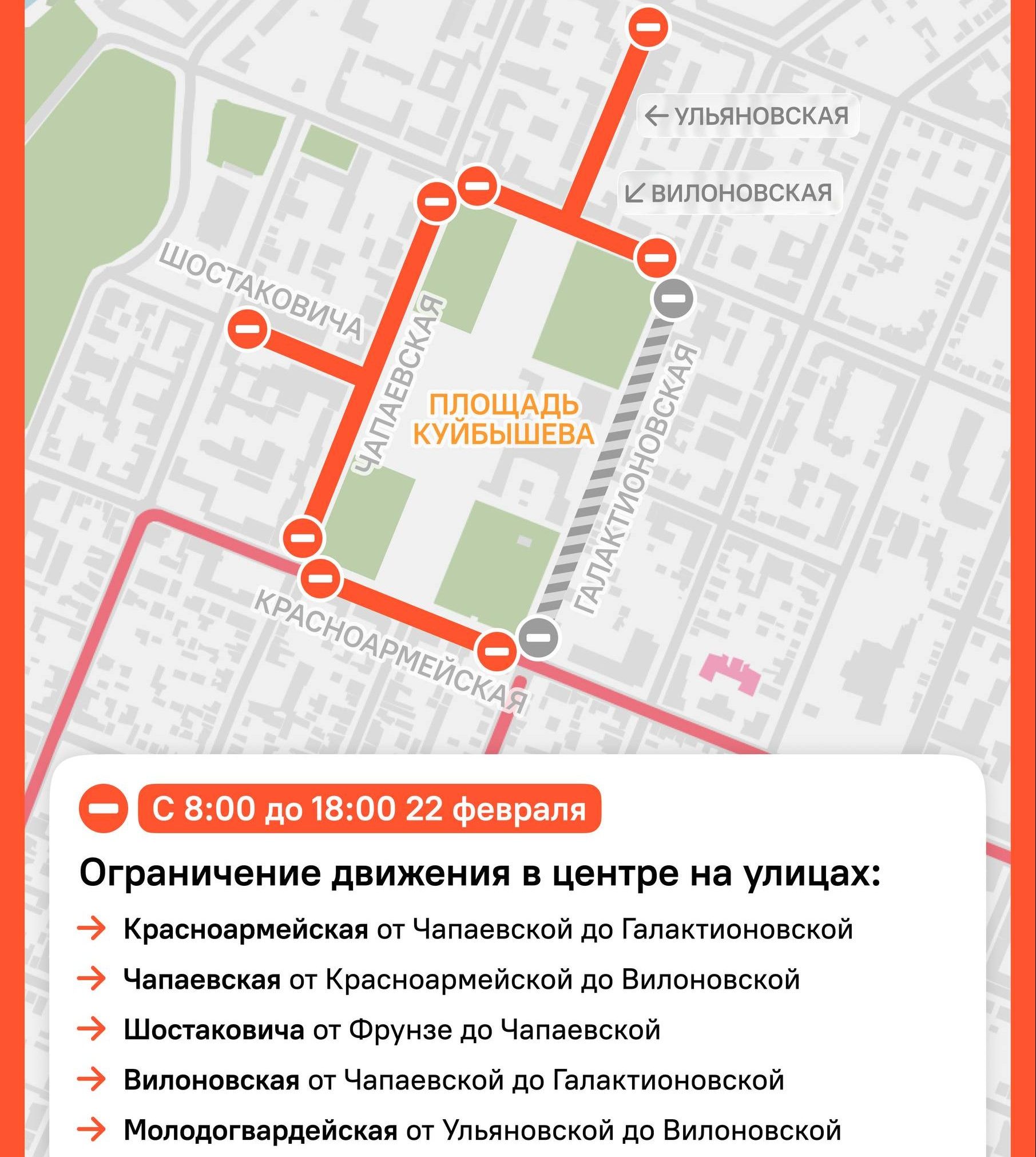 Остановка и стоянка транспорта будет запрещена с 16:00 21 февраля до 18:00 22 февраля: