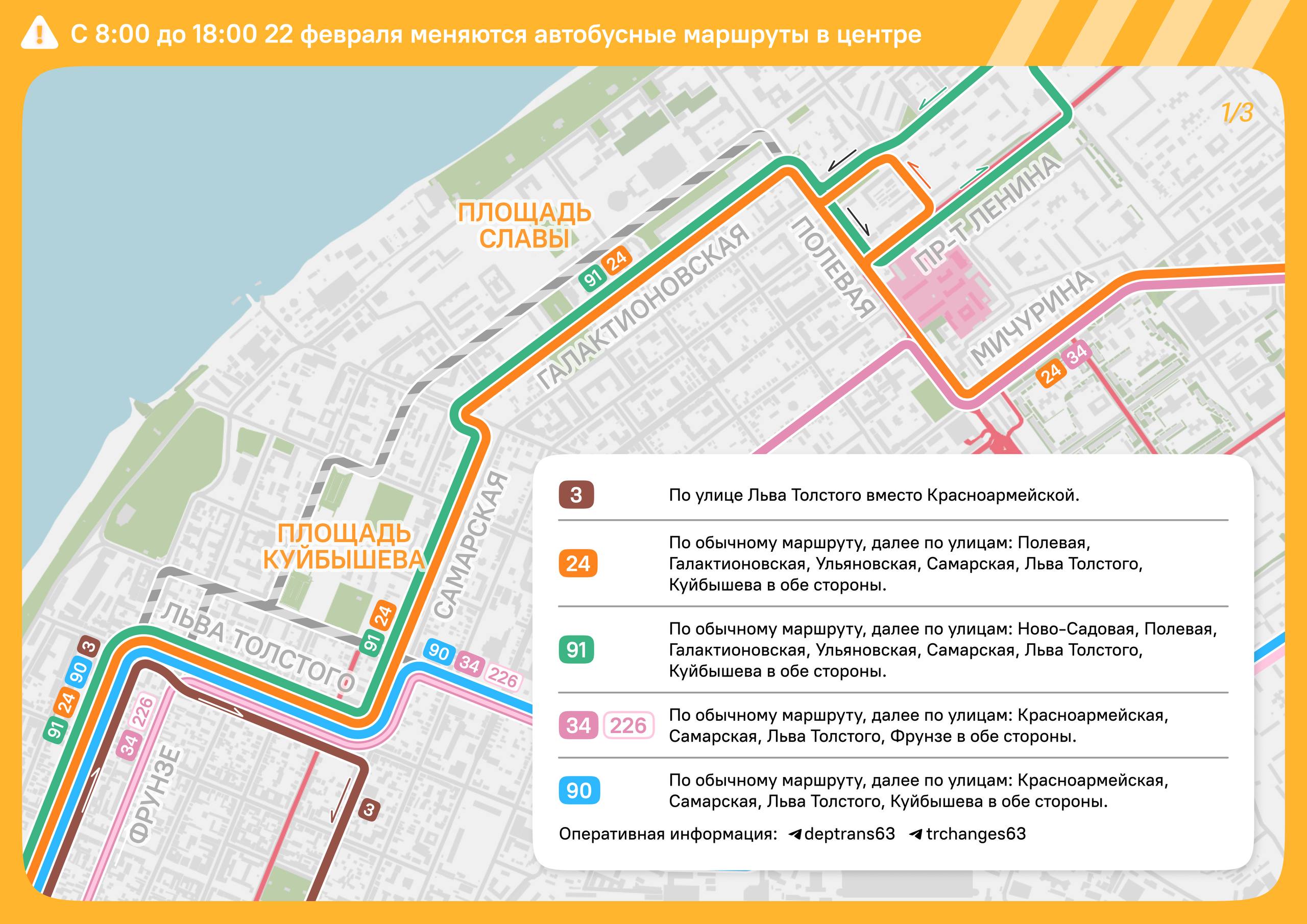 — №№ 34 и 226 — по Красноармейской, Самарской, Льва Толстого, Фрунзе;