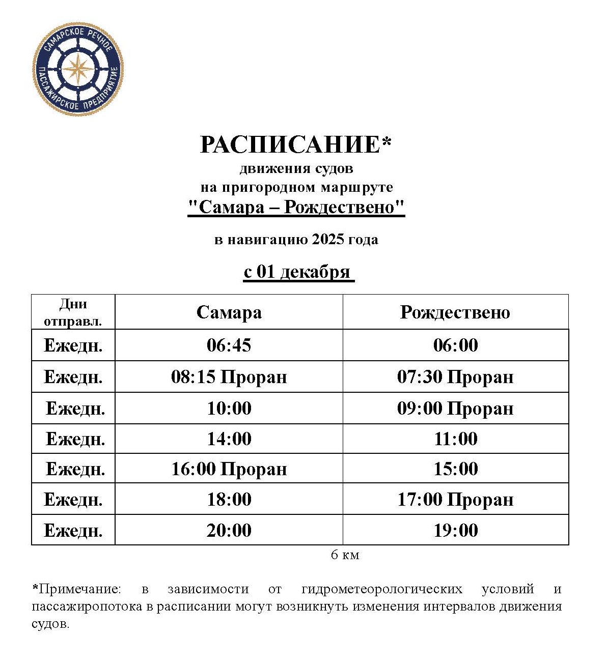 С 1 декабря по 31 декабря на маршруте «Самара (Речной вокзал) — Рождествено»