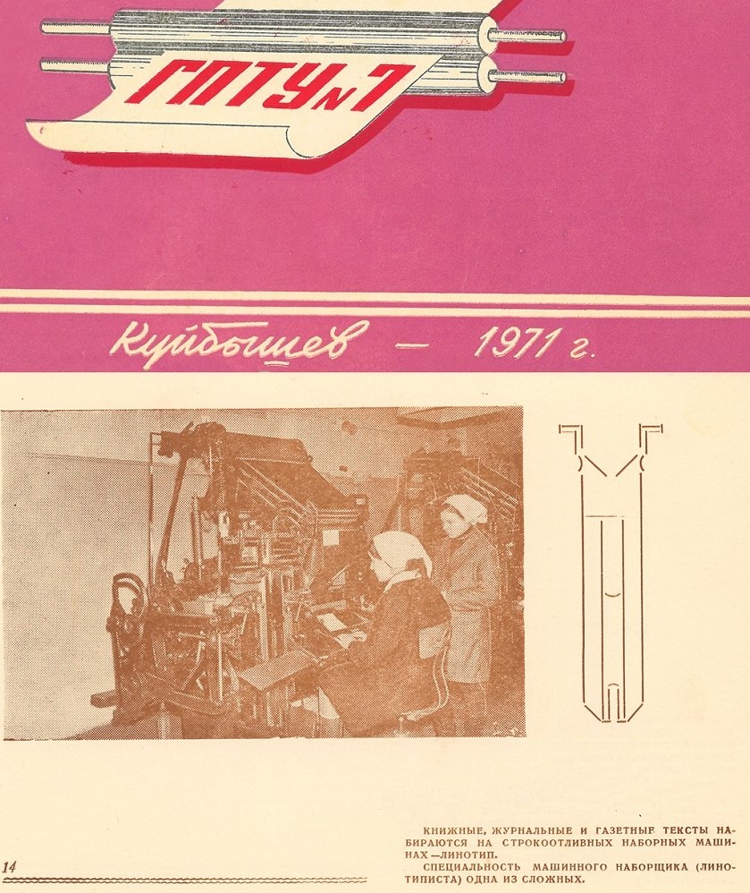 В послевоенные годы наборщиков ручного набора и наборщиков на строкоотливных машинах готовили в ГПТУ №7 (Льва Толстого, 56 / Молодогвардейская, 126).