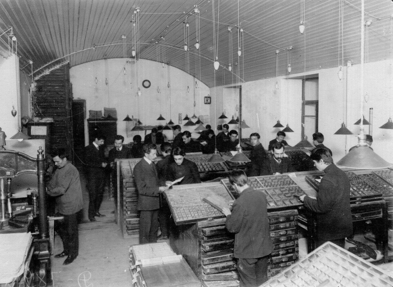 Незаменимыми проводниками печатного слова в ту пору были наборщики. Старший из них именовался метранпажем. Он распределял задачи между рядовыми наборщиками.